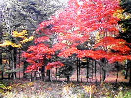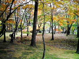 落葉をブロワーでかたずけてる、泉の里付近の庭。